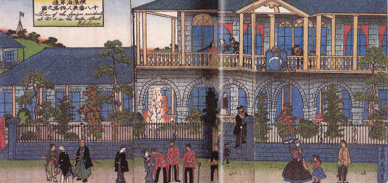 【横浜海岸通 十八番異人旅宿之図(二代歌川広重、1869年頃)】