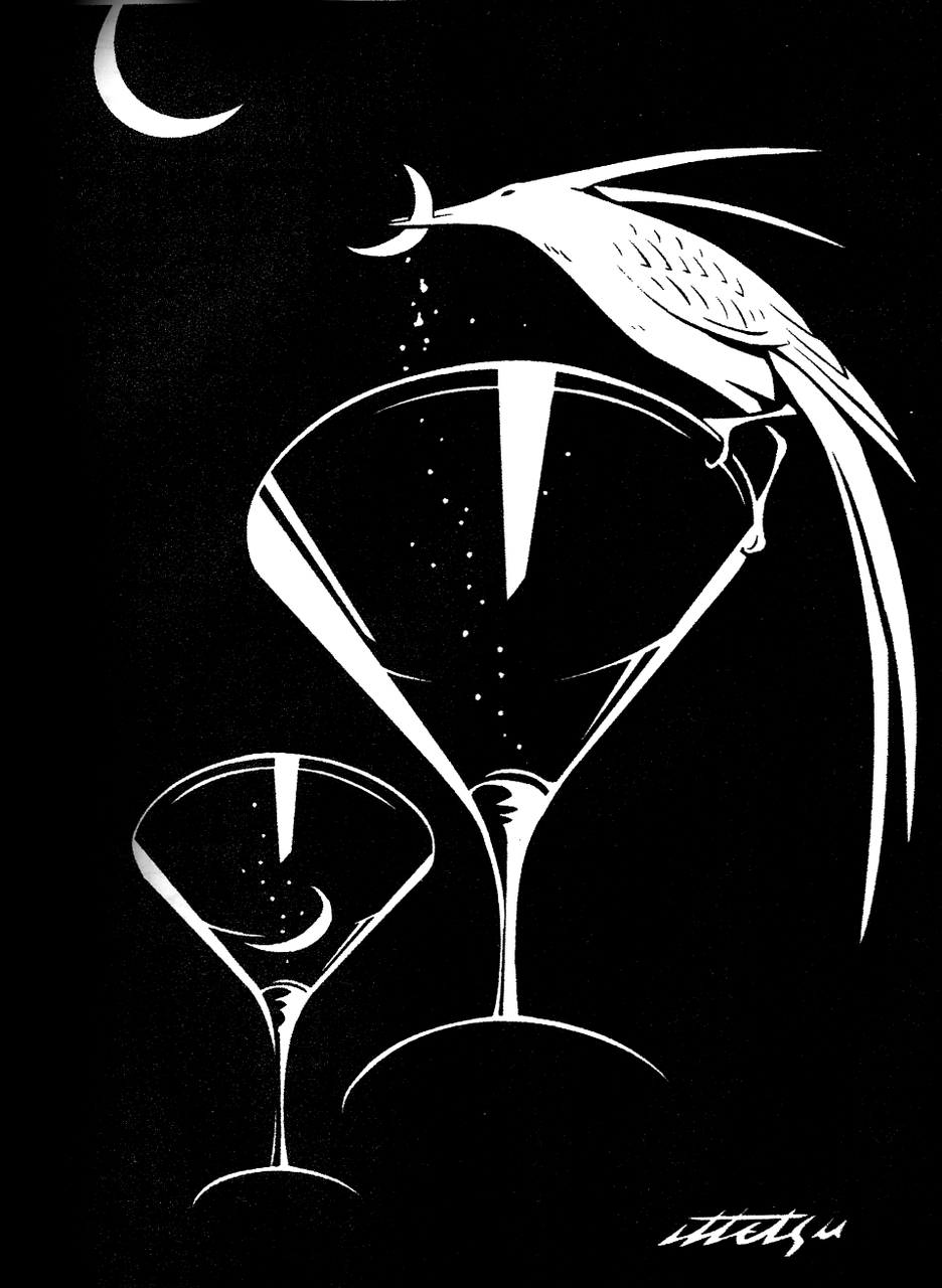 「酒場の絵本は」最初のはがきに。初老のバーテンダーと客たちの創りだす大人の世界をやがて一代限りで老いて消えてゆく酒場たちを切り絵で残そうとスタートして、1982年に自費出版から始まり、あまから手帖社より1993年出版。「to the bar」は1998年から出版、日本のBAR が64店紹介された。