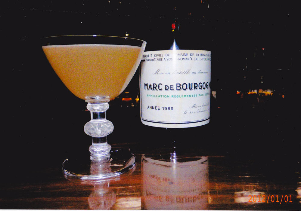ワイン通がタイトルを見たら驚くでしょう。白山さんは近年酒量が落ちたのかプレミアム・コニャックで作るサイドカーカクテルを1~2杯楽しんでくれています。この日は私からDRCのMARCで作るサイドカーを飲んでくれますかと尋ねると「面白いね」と作ることにしました。白山さんのサイドカーはコアントローの代わりにグランマニエを使用します。黄金色がかかり少しオレンジ色のサイドカーがマールの熟成を感じさせます。最初の一口でパワーとキャラクターが口の中で広がります。2杯めにプレミアムコニャックで作りましたが香りは芳醇で繊細かつエレガントで申し分ないが、DRCのマールのサイドカーがパワーを感じます。ロマネ・コンティのワインは比較的に”フェミニン“なワインと表現されるそうです。この「マール」は男性的でした。