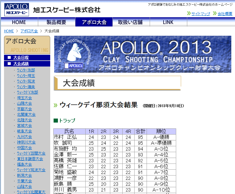 スコア表 アポロ装弾のホームページより ※画像クリックで拡大できます