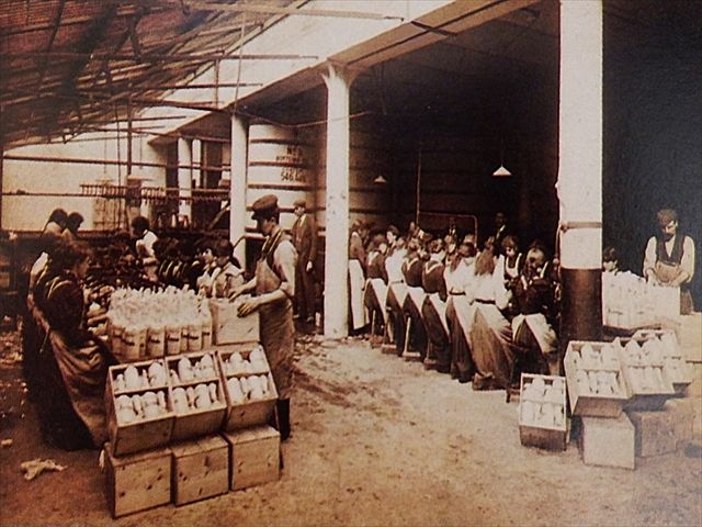 ボトルの洗浄とブレンドウィスキーのボトリング風景で1898年はウィスキーブームがピークの年でスコッチウイスキー業界のブレンデットで成功したように見えた、エジンバラの「パチソン社」が会社を大きくし、野放図経営で12月6日倒産した。