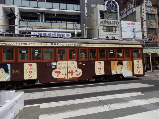チンチン電車はマッサンとリタの動く広告電車でした。