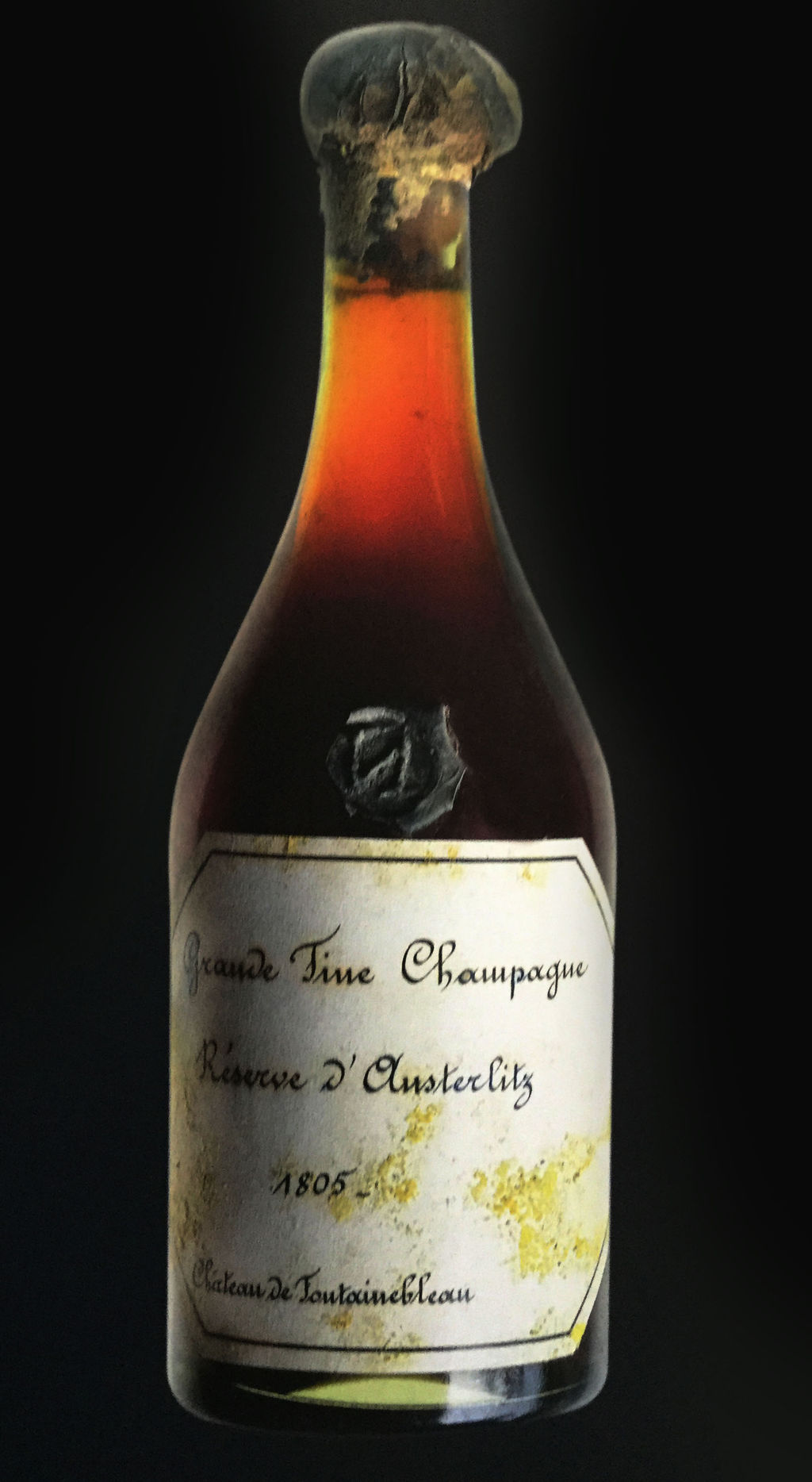 『1985年ある友達から、彼が時々 食事に行く有名レストランに素晴らしいコニャックがあると言う話を聞いた。その中の1本が グランド・フィーヌ・シャンパーニュ・レゼルヴ・ドーステルリッツ 1805。ナポレオン皇帝の貯蔵庫にあったことを示す、ナポレオンの『N』の記章がついていた。』